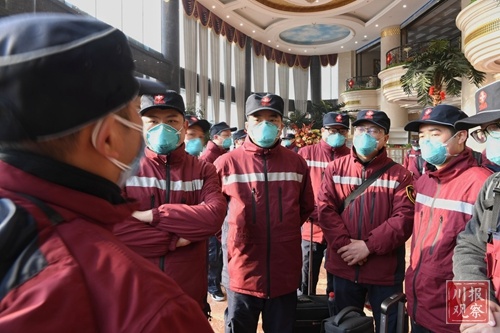 根据安排,第四批四川援鄂医疗队,即国家(四川)紧急医学救援队72名队员在武汉武昌火车站下车。列车上的其余乘客不能下车,他们透过玻璃,向医疗队队员们挥手致意,有的则竖起大拇指。