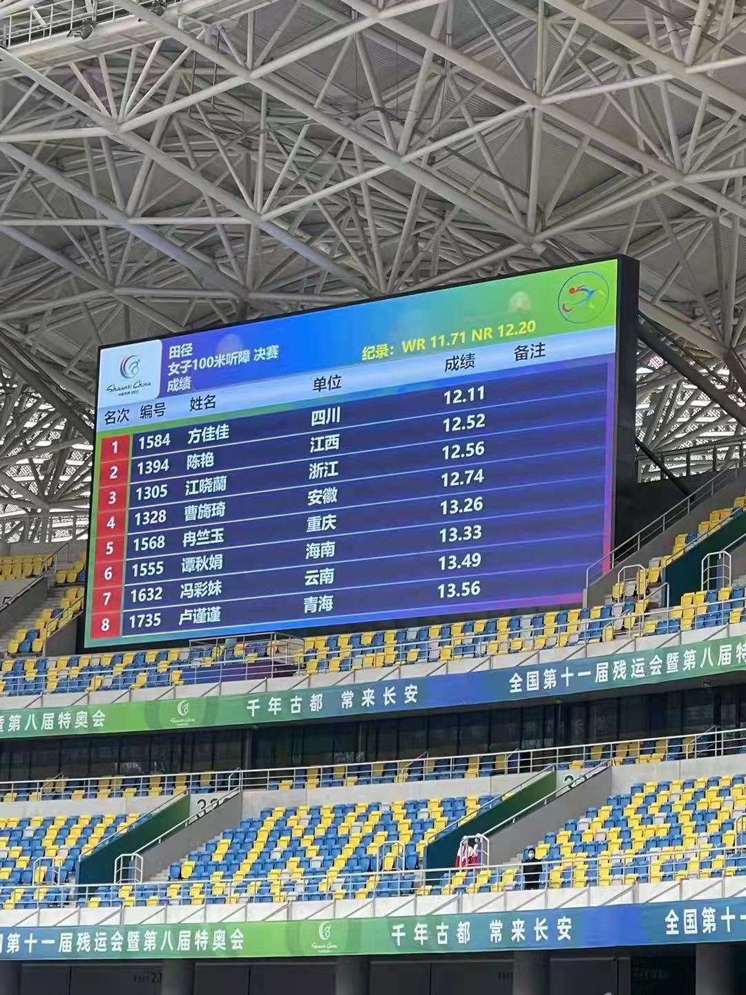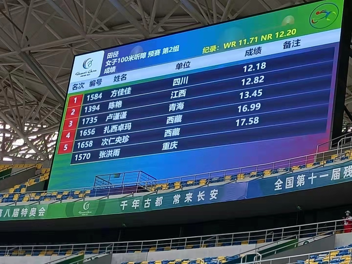 10月23日,第11届残运会第8届特奥会在陕西省全面展开。在残运会田径比赛中,来自四川德阳的00后小姑娘方佳佳第一次参加全国残运会就惊艳全场,她两次打破女子100米听障组全国纪录,并最终以12秒11摘得金牌,而小姑娘的梦想是,能够在本届比赛中拿到两枚金牌进入国家队。