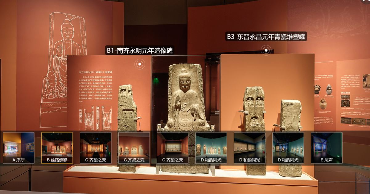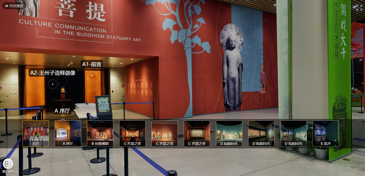 比如这个“映世菩提”,不仅有各种360度旋转的观景还可以列表播放(也就是你再也不用像在实地一样,必须从头逛 到尾,而是想看哪部分就点哪部分)