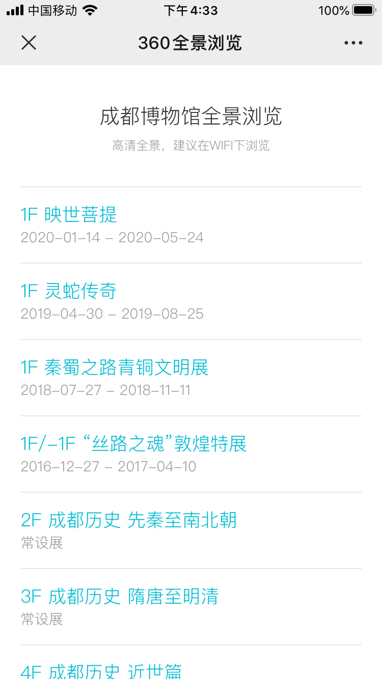 再点开其中的“VR漫游”,成都博物馆的所有全景展览就出来啦