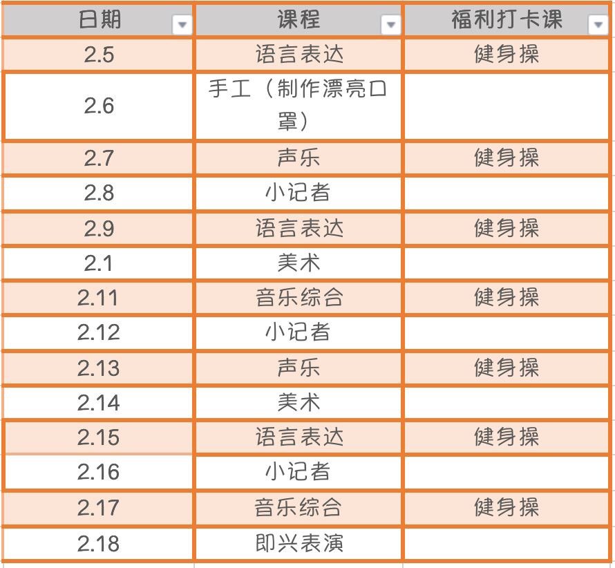 课程表一览