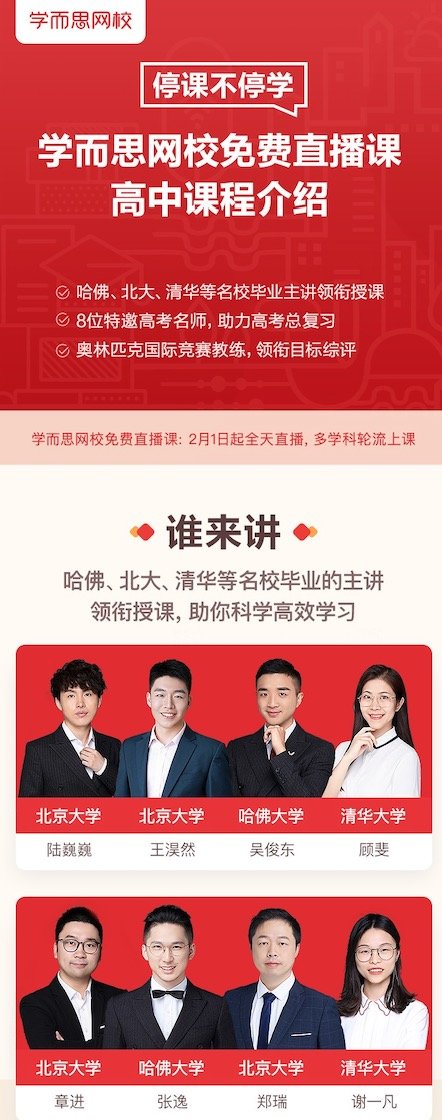 即日起,每天早8:00开始全天候直播,小学、初中、高中全覆盖,还有名家大师课、思维密码课等丰富学习内容,每晚家长课堂帮助家长更好陪伴孩子成长。