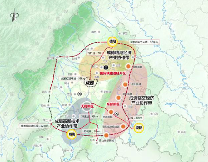 区域位置上,成德眉资4地是成都平原的主体,地理相连。德眉资3市中心城区距离成都主城区50-70公里左右,都在高铁半小时、高速一小时通勤圈内;经济发展上,2020年4市经济总量达2.24万亿元、常住人口近2600万;历史人文上,成德眉资4市同属于一个省级行政区,山同脉、水同源、文同根,有着同城化发展的社会心理基础。