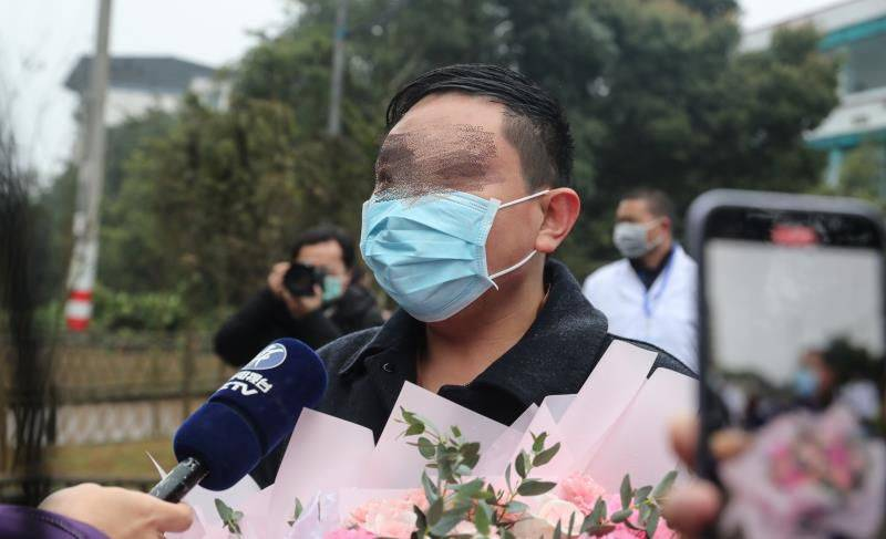 2020年2月8日,四川省泸州市治愈出院新型冠状病毒肺炎患者接受采访。