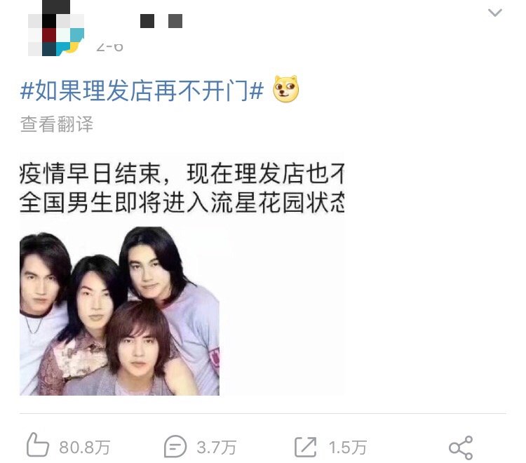大门不出,二门不迈,不光闲得长草,刘海也是真的该剪了……近日,“如果理发店再不开门”的话题冲上热搜,获得80万点赞。网友们纷纷调侃再不剪头发,自己马上就将华丽变身,成为杀马特贵族。