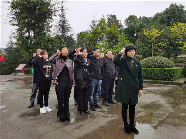 在陈毅元帅塑像前,党员干部面对鲜红的党旗,紧握右拳,重温入党誓词,庄严宣誓,用铿锵有力的宣誓声表达坚持党的领导、弘扬革命传统、践行初心使命的信心和决心。大家一路走、一路学,在讲解员的解说下,对老一辈革命家艰苦卓绝的奋斗历程与坚定的红色理想信念有了更深的感触。