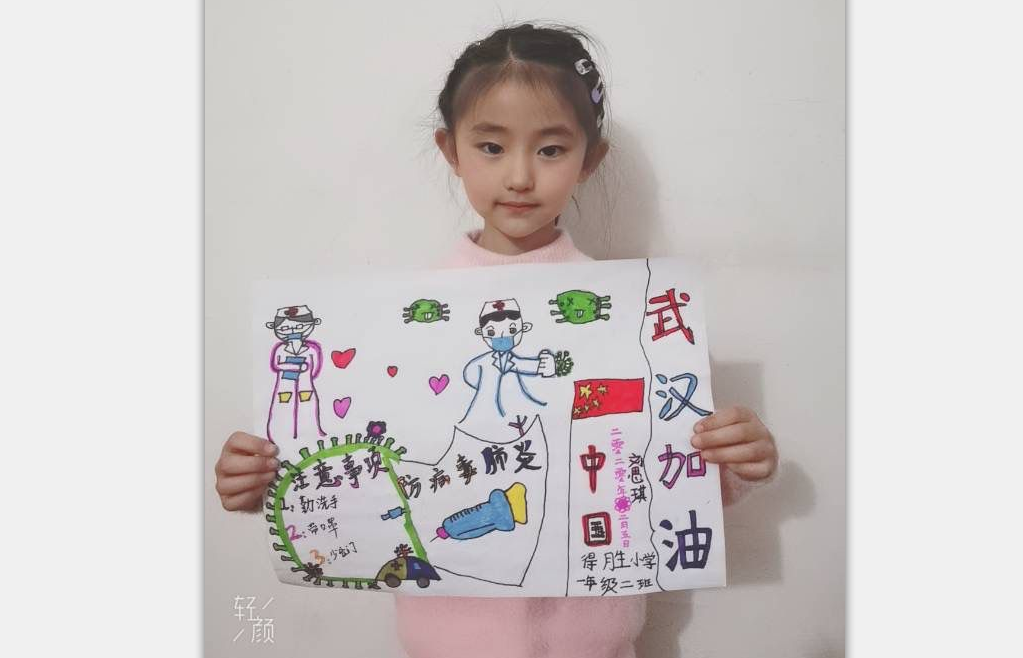 8岁的小朋友说:万众一心,众志成城!共同打赢抗疫防疫攻坚战!中国加油! 湖北加油!武汉加油!挺住!