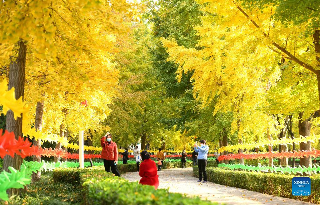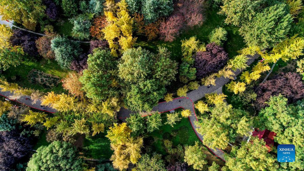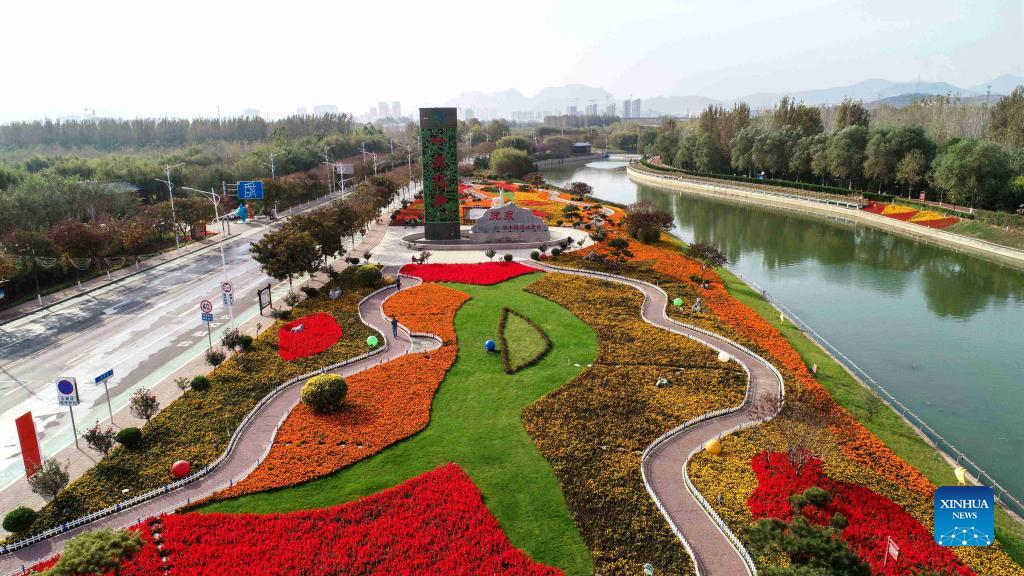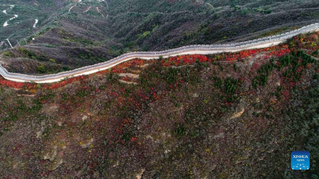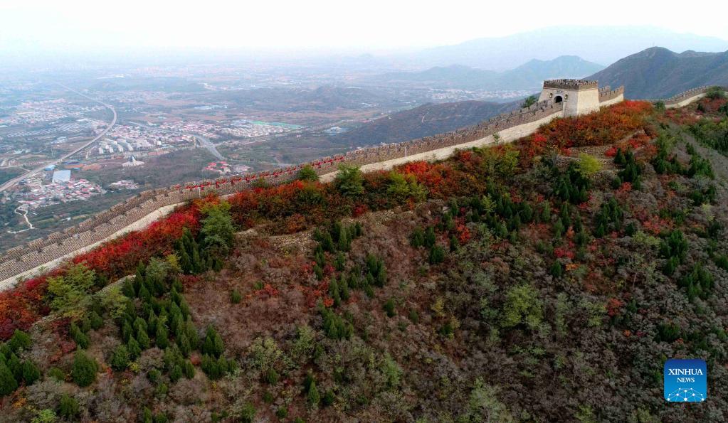 Aerial photo taken on Oct. 27, shows the autumn scenery in Changqing scenic area in the west of Luquan District of Shijiazhuang.