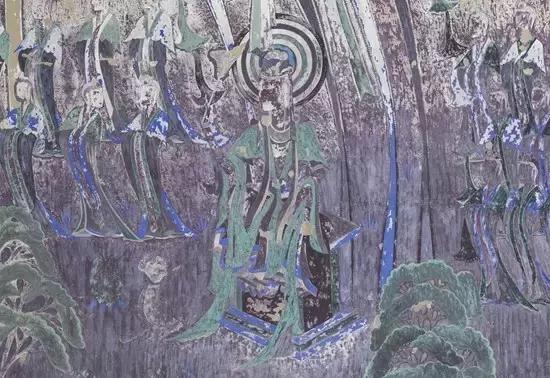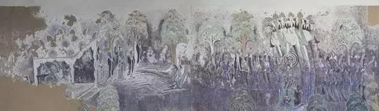 这上层所描绘的,就是维摩诘与文殊菩萨聊天说法,惺惺相惜。而在壁画下层的左侧,都还有画面,声势浩荡的一个队伍,他们又是谁?