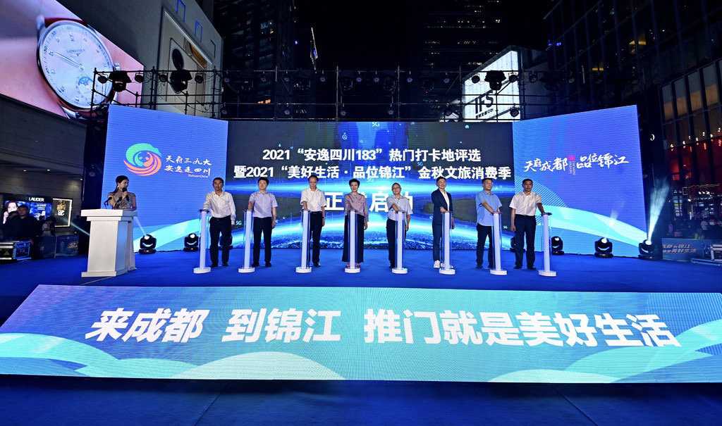 9月29日,成都春熙路,2021“美好生活·品位锦江”金秋文旅消费季在众多市民的见证下正式启动。一个月来,古朴的大慈寺、繁华的成都远洋太古里、热闹非凡的“百年金街”春熙路、安逸静谧的水井坊酒坊遗址、活色生香的老成都东门市井,都市田园乡愁打卡地三圣花乡……锦江秋意浓,游客玩兴高。在这片热闹繁华、时尚现代、古朴自然多种气质交融的土地上,总能找到一种适合你的耍法。