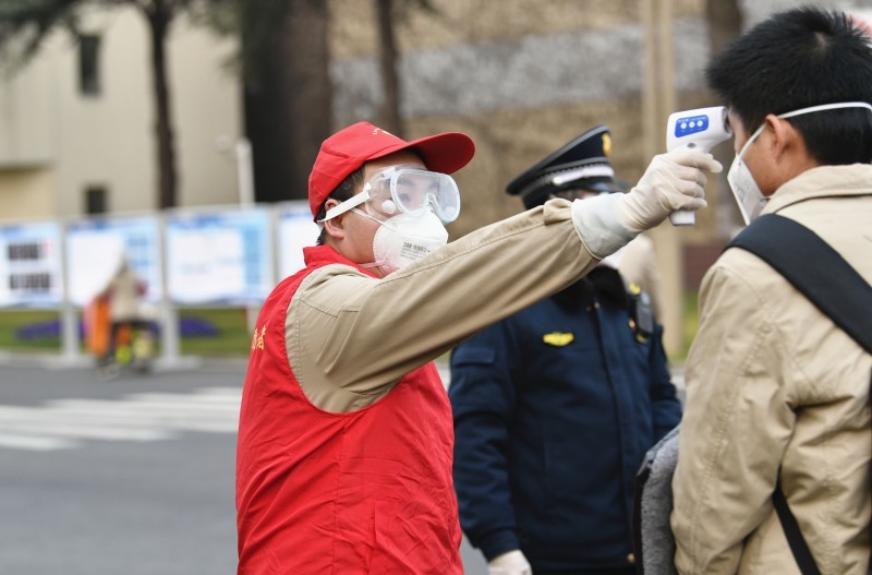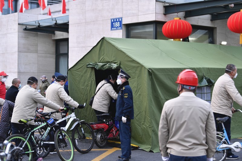 2月10日,位于德阳的东方电机迎来春节后正式全面复工复产的第一天。企业门口,一个军绿色的大帐篷搭起了一个临时的红外线自动检测通道,职工们都需依次经此步入厂区。显示体温异常的,安保人员会用手持体温枪再次检测,确认正常后方可进入。