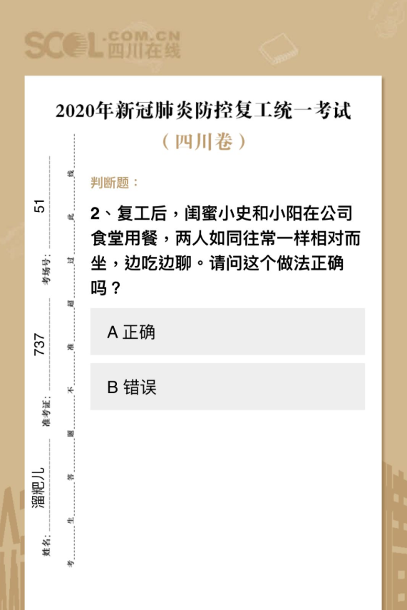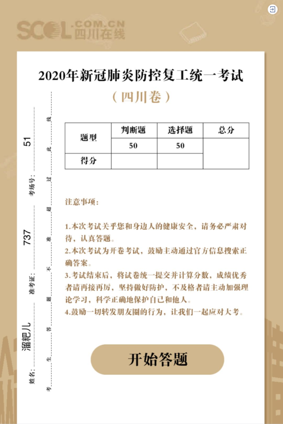 这里有一份《2020新冠肺炎防控复工统一考试》
