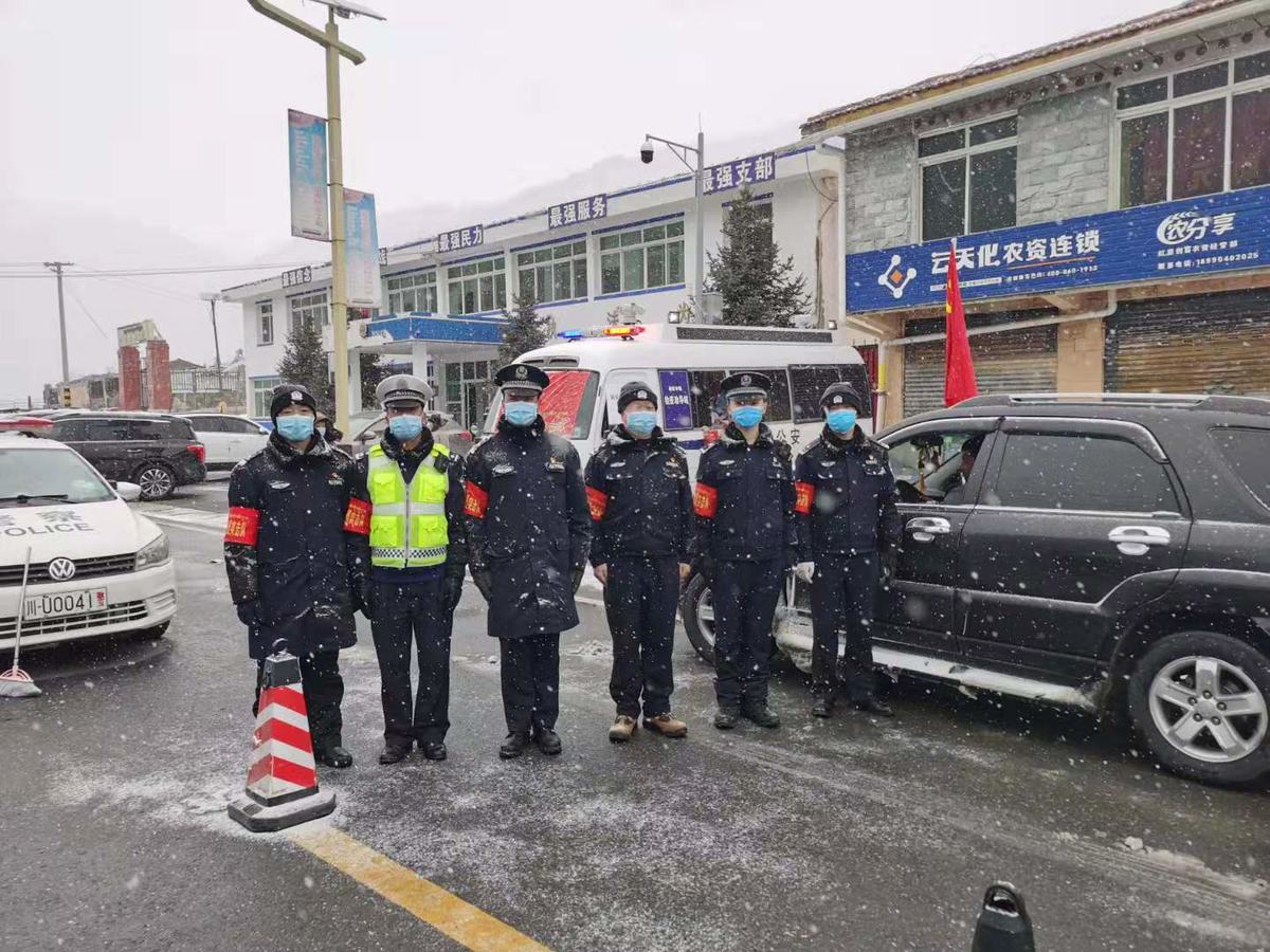 2月11日晨,红原县刷经寺镇气温接近零度,当地群众工作组、卫生医务人员冒着风雪进村入户为群众测量体温、问询情况,各检疫站、劝导站工作人员正忙碌有序的进行着劝导、检查、检疫工作。