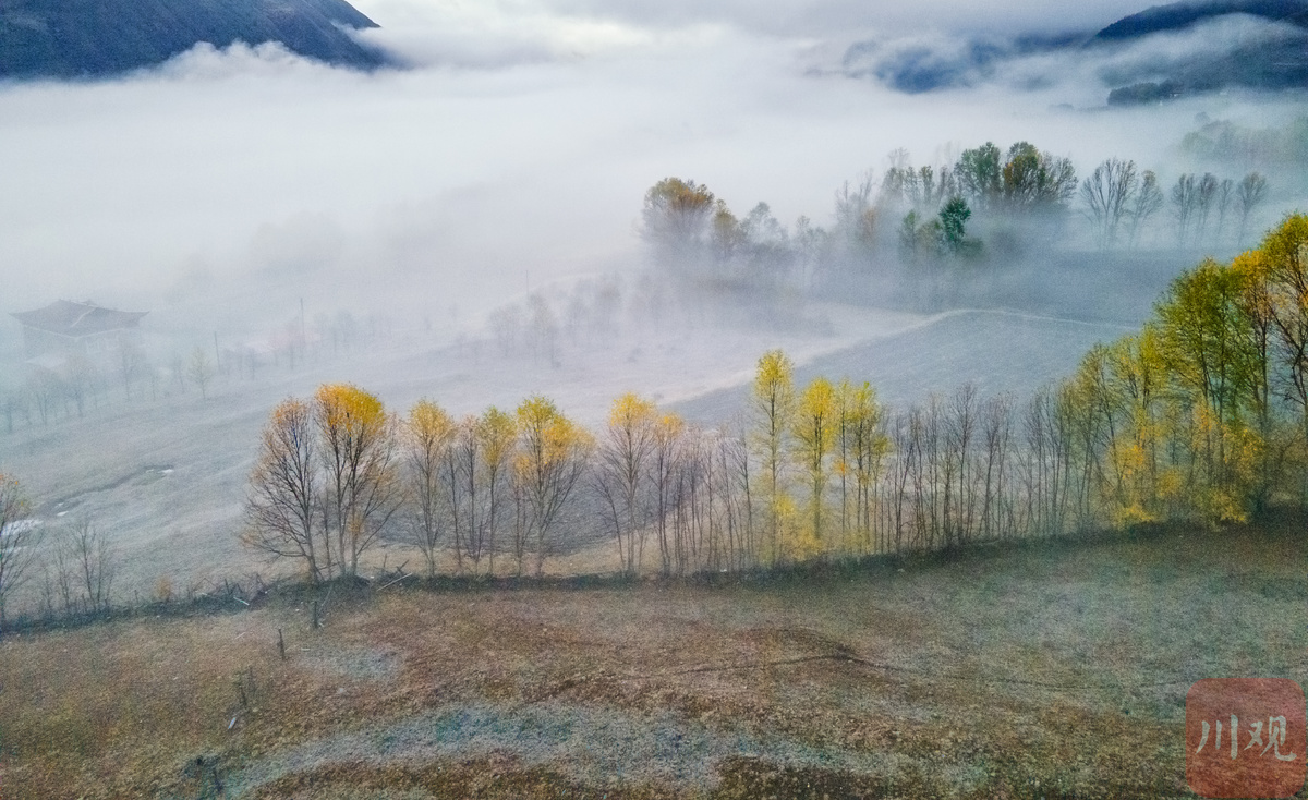 2021年10月23日,金黄的树叶,银白的雪山,湛蓝的天空,光与影的变幻赋予这些颜色全新意义,这里是新都桥,一个能够让清新自然的色彩拥抱自己,滤去心中的繁杂,找回心灵的净与静的摄影天堂。