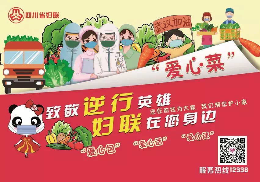 记者2月11日从四川省妇联获悉,省妇联作为“娘家人”时刻牵挂最美“逆行者”和他们的家庭,向全省驰援武汉医务人员家属发出《慰问信》,联合省卫健委、省妇儿基金会联动开展“四送到家”活动。各级妇联组织通过送“爱心包、爱心菜、爱心课、爱心话”到家,关爱援鄂医务人员及其家庭,为抗疫阻击战中的最美“逆行者”减轻后顾之忧,“一对一”传递关心关爱,合力做到“您的需求我来办”。