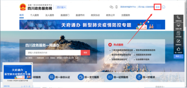 用户打开四川政务服务网:http://www.sczwfw.gov.cn/,建议采用谷歌、火狐或360浏览器(极速模式)。