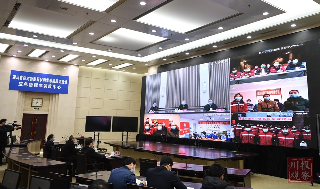 2月12日,省委副书记、省长、省应对疫情应急指挥部指挥长尹力视频连线我省援助湖北医疗队代表,代表省委省政府感谢全体医疗队员关键时刻挺身而出,称赞援鄂队员是四川医务人员的优秀代表、是新时代四川的骄傲,希望全体队员继续保持昂扬的斗志,用优良的专业素质打赢战“疫“,期待大家平安胜利归来。