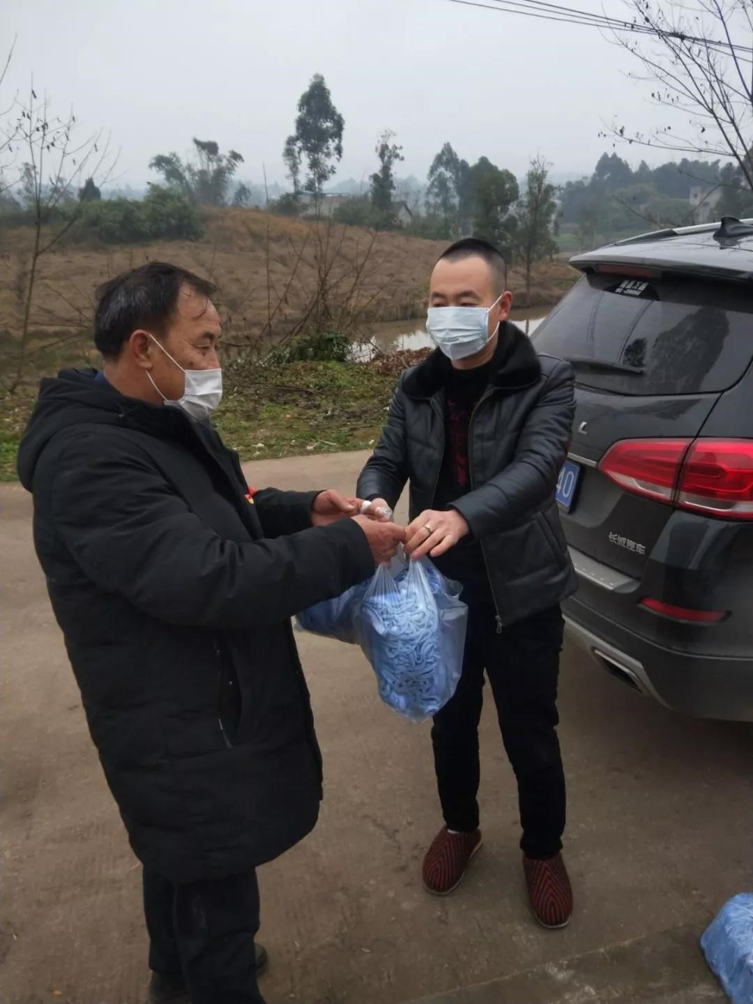隆昌市龙市镇村民姚刚主动召集工人,赶制1000余个口罩,免费送给甲子湾村村民手中。