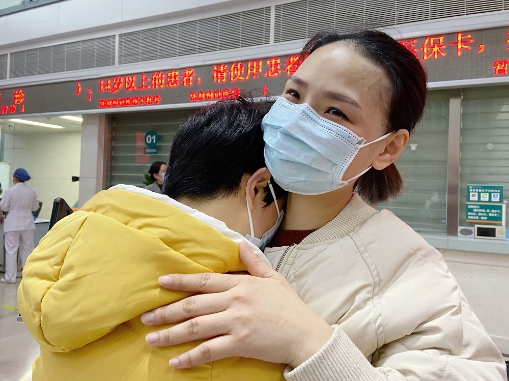 泸州支援湖北的医疗救援队队员李玉娟已整装待发,同事前来送行。刚见面,便一把抱住了李玉娟,没忍住眼泪。嘴里还不忘叮嘱,要做好防护,要健康回来。郭慧琳摄