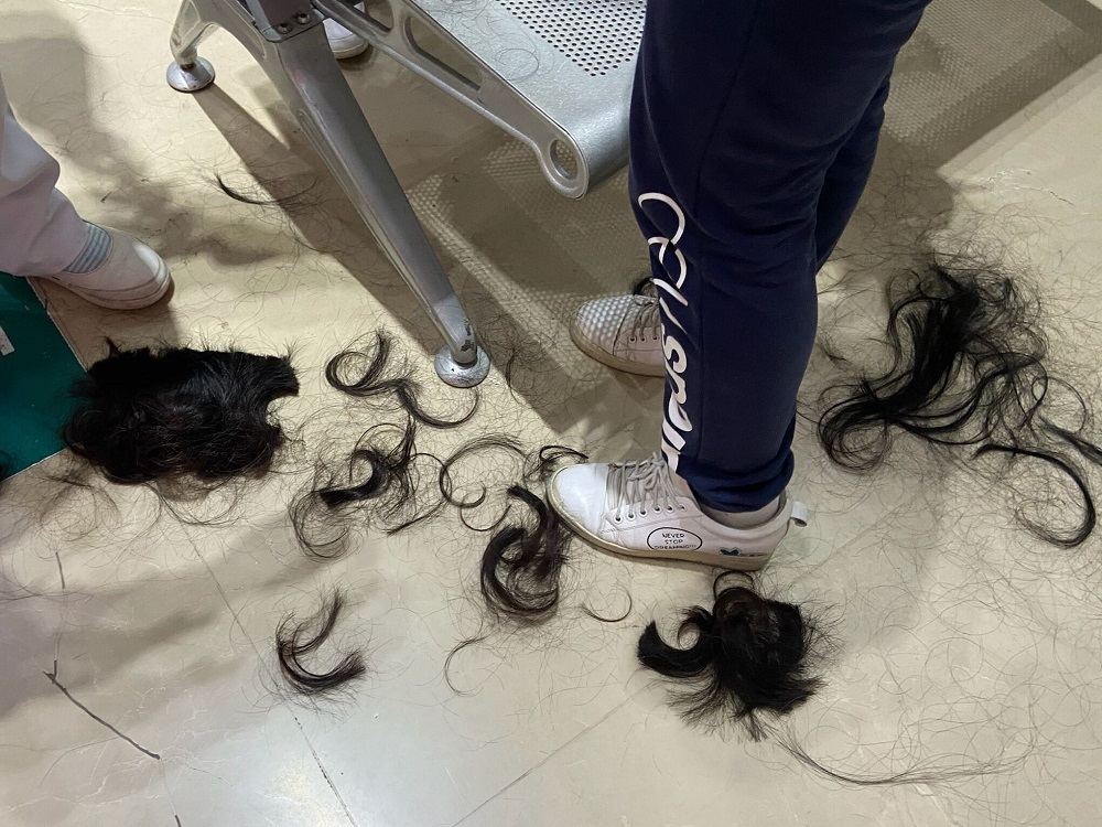 西南医科大学附属医院门诊大厅地面,散落了不少医护人员的头发。郭慧林摄