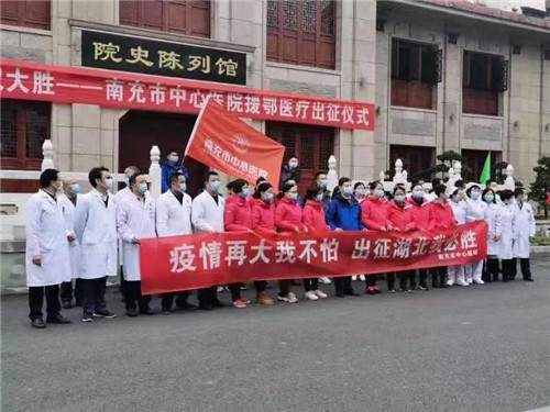 2月13日,南充市中心医院首批医疗援助队20名队员集结出发,前往湖北省一线抗击疫情。“不战胜疫情不轻言还乡”他们临行前郑重宣誓。