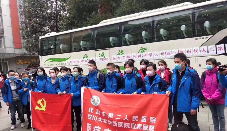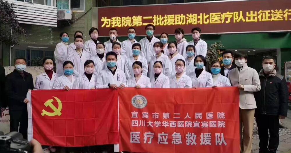 2月13日上午11:00,宜宾市第二批援助湖北医疗队集结出发。据悉,此批医疗队共28名队员,8名医生,20名护士,队员们全部来自宜宾市第二人民医院重症医学专业、呼吸专业、感染专业的业务骨干,队员们均主动请战,奔赴参与一线救援。