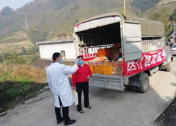 该车除了具备售货功能,随车还搭载了乡镇卫生院医生、村干部等工作人员。群众在采购时,医生会先对村民进行体温监测,村干部也会检查群众家中有无走亲访友等聚集情况,同时根据情况为群众提供事务代办等服务。