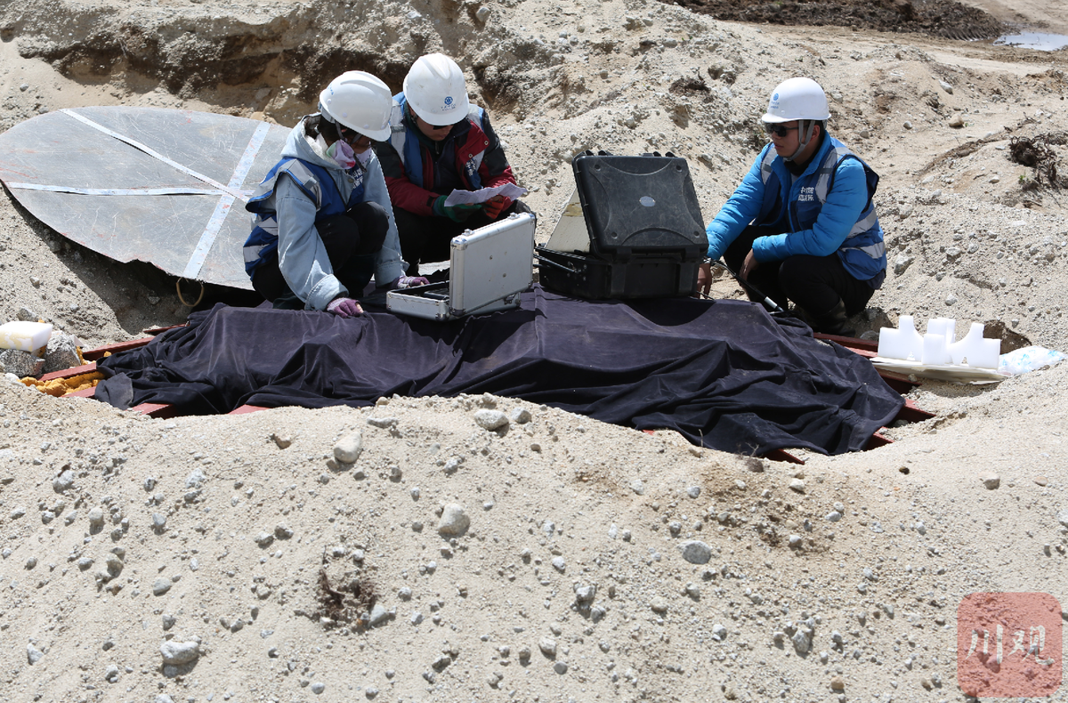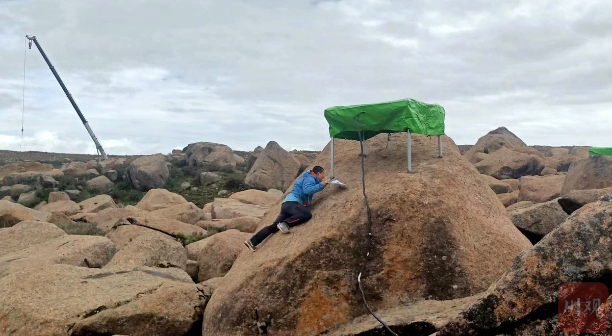 2020年5月15日,科研人员匍匐在巨石上安装电磁粒子探测器。