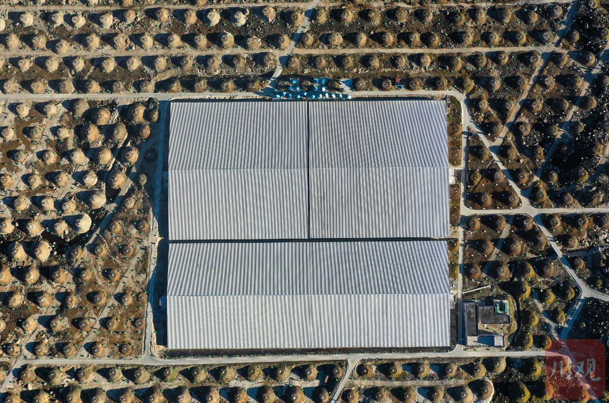 10月11日,无人机航拍的水切伦科夫探测器阵列,探测器总面积为7.8万平方米,由两个150米× 150米和一个300米× 110米水池组成。