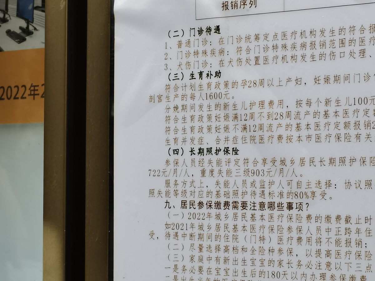 成都市某小区内,张贴着2022年城乡居民医疗保险政策宣传资料。