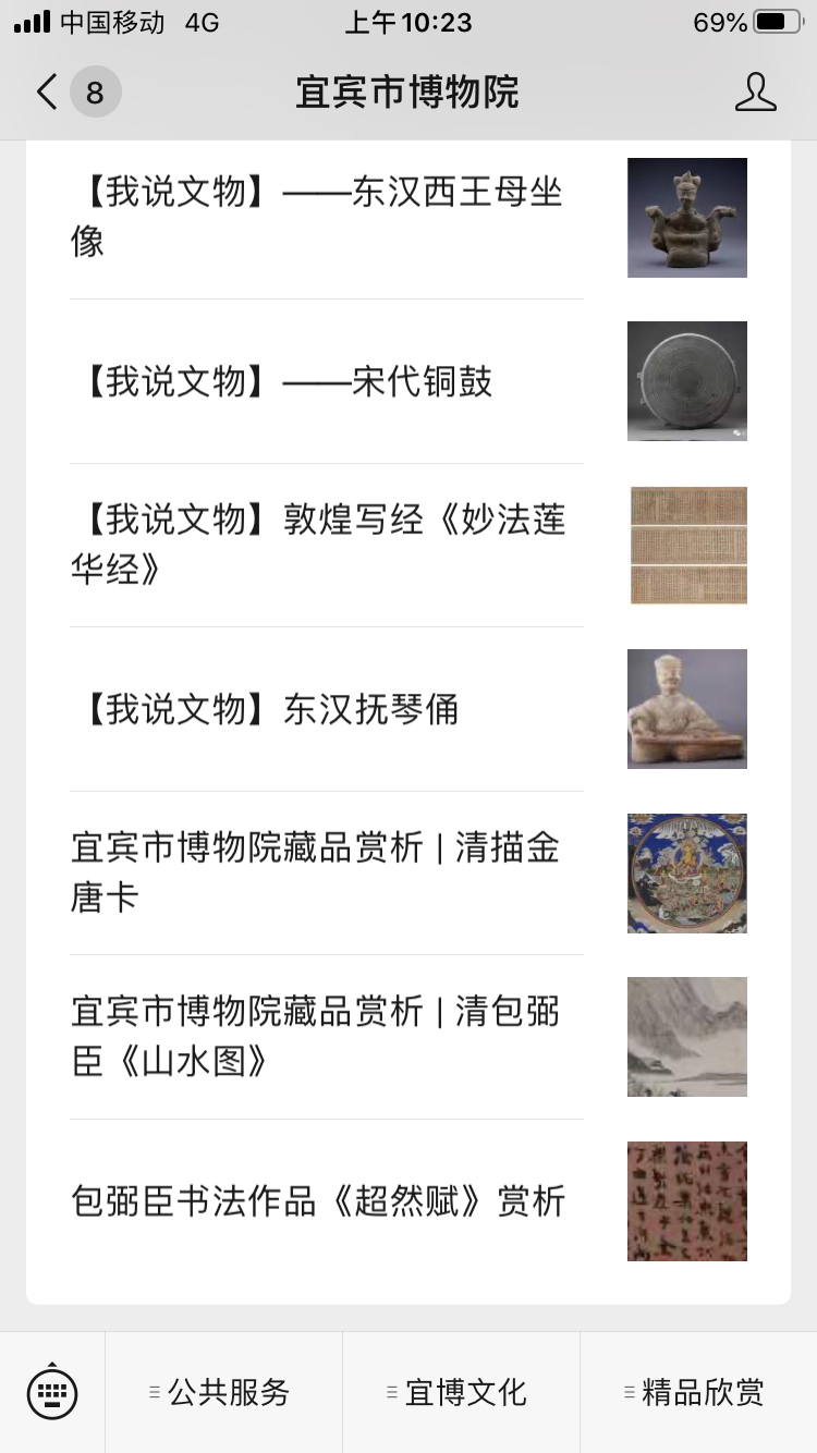 另一个选择:打开宜宾博物院微信公众号,在右下方选择精品欣赏