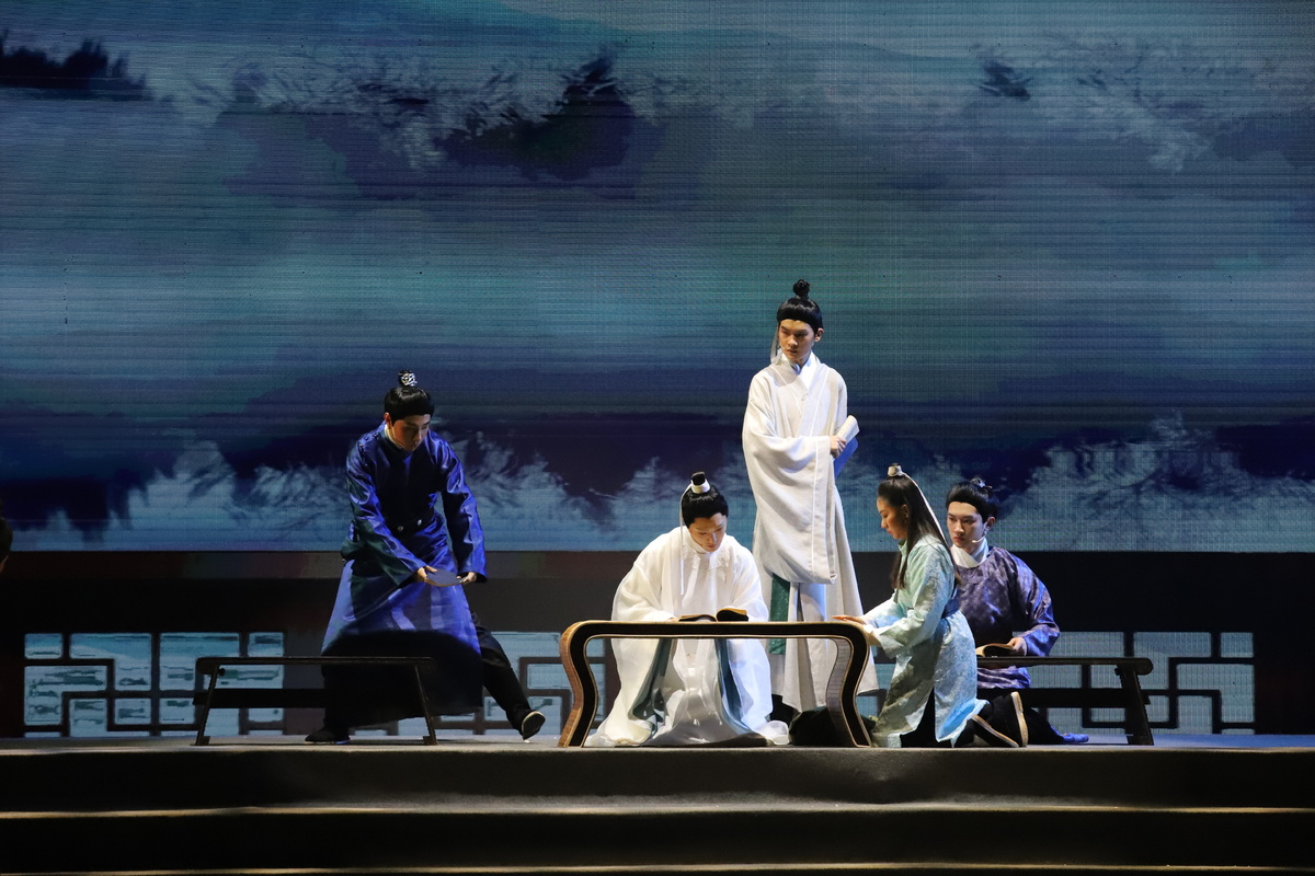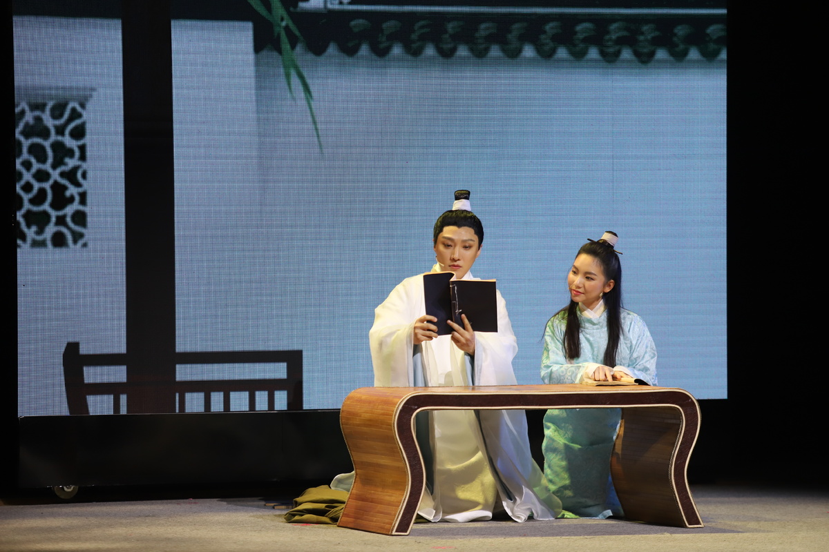 11月3日晚,情景话剧《陈子昂》在射洪文化艺术中心进行首场演出,该剧通过参加研学的少年在老师的讲述中,以古今对话的方式,向观众展示了一代文宗怀才不遇、壮志难酬的一生,以及陈子昂强烈的爱国爱民思想。