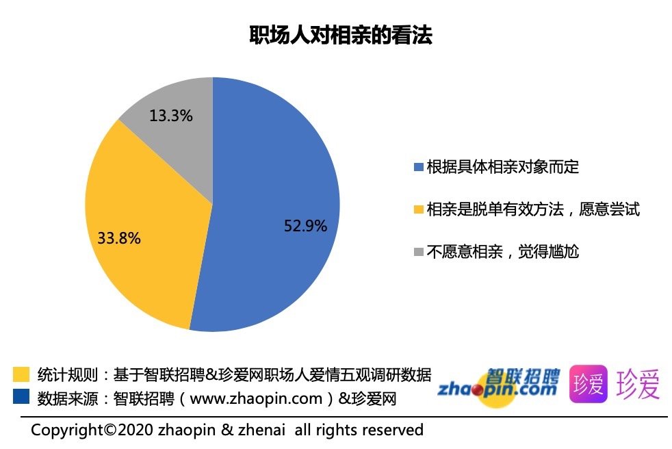 87%的职场人并不排斥,超一半认为相亲可根据对象情况再做决定,另有33.8%的职场人则愿意尝试,认为这也是脱单的一种有效方式。