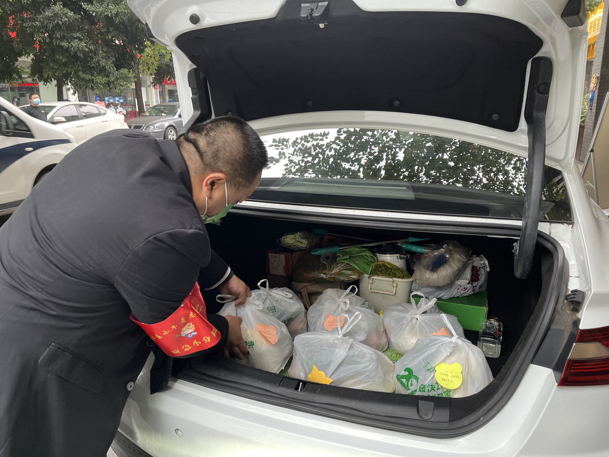 当日,应急小分队带着由爱心企业捐赠的物资又一次奔跑起来,将温暖与关怀送到辖区封控管理区域的群众家中。