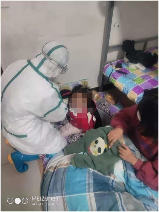 在晚班已有1人值守服务留观人员的情况下,专门为两个孩子又增派1人轮班24小时看护。深夜里护士“爸爸”和护士“妈妈”在留观区走道上巡守,无时无刻不关注着213房间的情况。“临时”爸妈无微不至的照顾下,孩子们安然入睡。