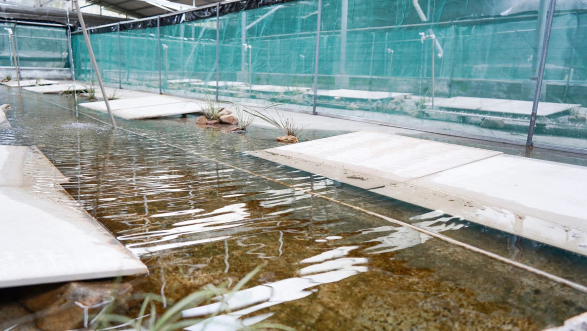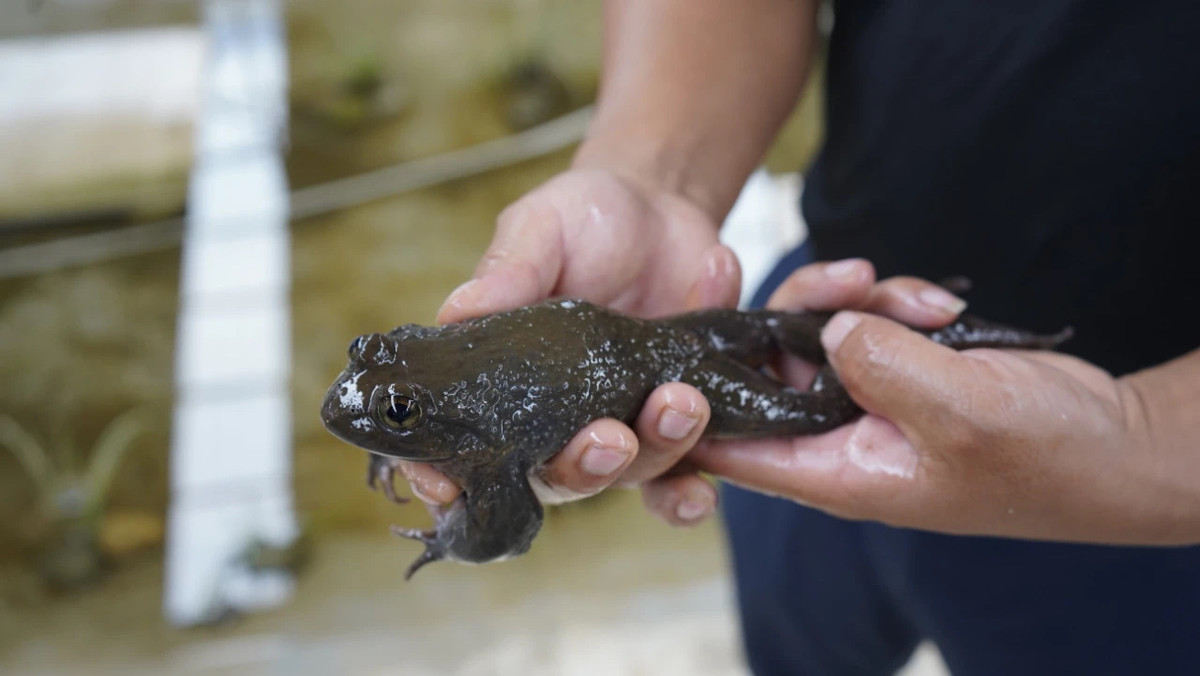 “养殖石蛙最关键的就是生长环境,因为普威气候环境、空气水源等各方面都适合它生长。我们还在水池里种了菖蒲苗子,还原野外原生态的环境,有利于它生长。”黎起周抓起一只石蛙介绍道,这种本地人常称为“石蹦”的动物,是我国南方山区特有的珍稀品种,生活在山涧小溪的石隙或附近岩石中,是地区生态环境的“晴雨表”,也被誉为山泉中的“活人参”和“百蛙之王”,“野生石蛙是国家二级重点保护动物,而通过人工养殖石蛙,不仅有良好的生态效益,还有很好的经济效益。”