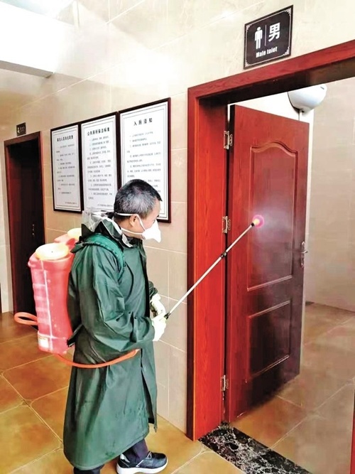 “滋滋滋……”2月11日,戴着口罩和手套的清洁人员黄国兵正在自己的工作岗位上忙活着。他先对花萼湿地公园内的公厕进行全面消毒,随后用抹布仔细擦拭洗手台、门把手等区域。