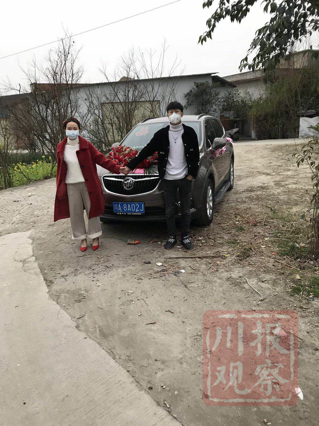 新郎叶精忠,是石板滩街道分水社区的一名95后工作人员,一直奔走在抗疫一线。今天上午,他穿上新衣,戴着口罩,开着私家车,接上新娘子,花两个小时完成了人生大事。