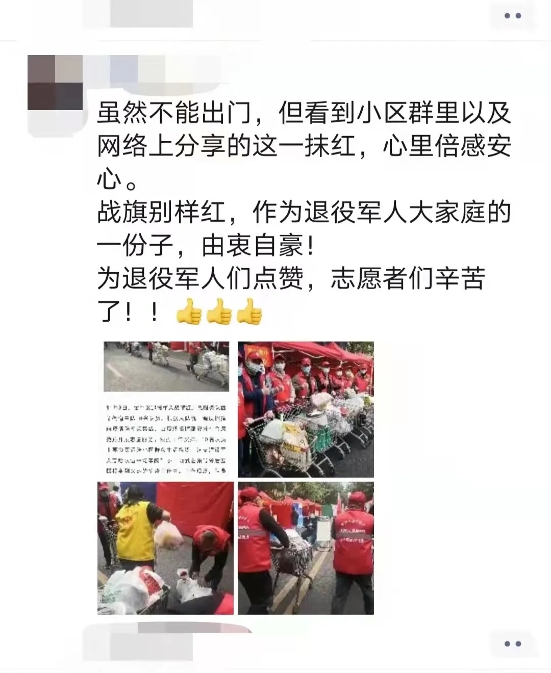 这样动员、集合各方力量的防疫紧急行动,感动了处在封闭管理阶段的居民,他们纷纷在业主群里点赞、留言,为退役老兵的军人风采击掌,为日夜奔走的红马甲群体感动。