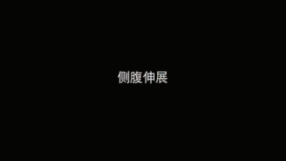 ② 吸气时双脚打开成侧弓步,吐气时右手引领躯干向左侧侧屈,静力性保持10秒钟,放松2秒,循环完成三次。