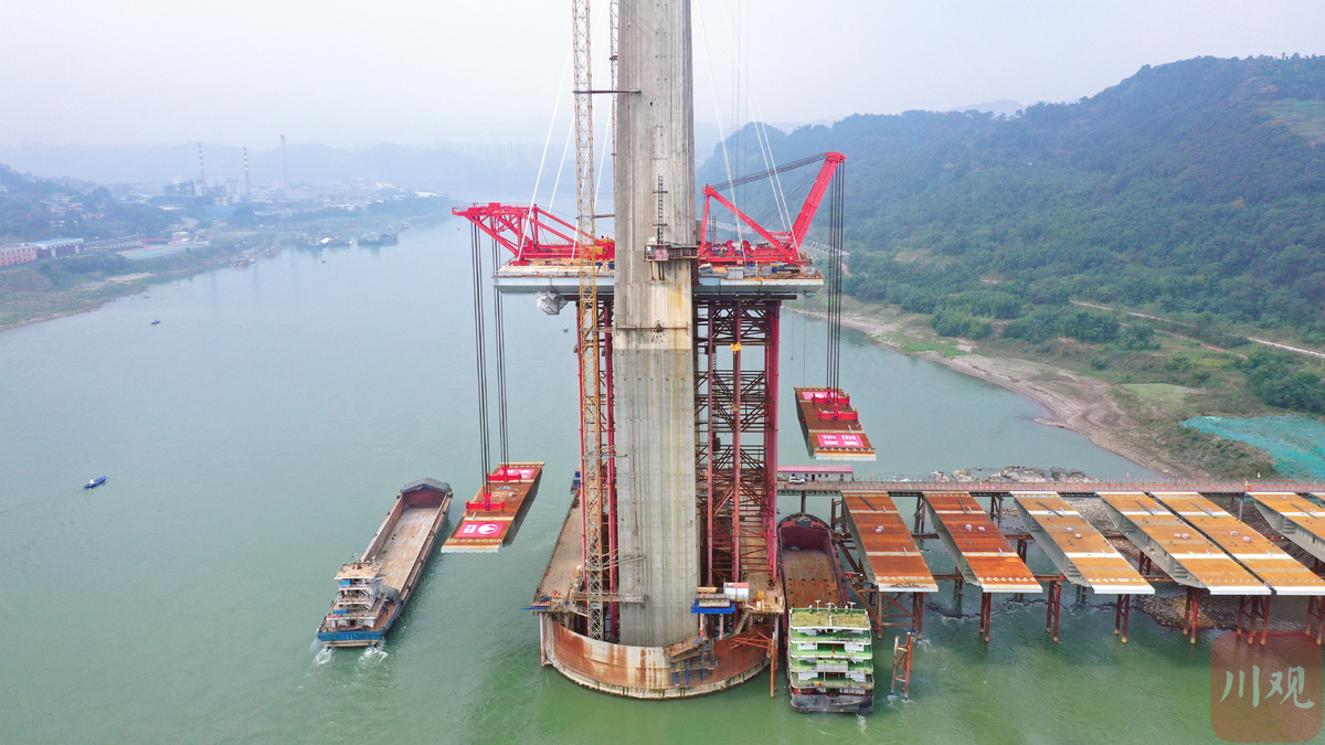 据介绍,此次宜宾临港公铁两用长江大桥全面进入超宽、超重钢箱梁对称悬拼作业,标志着大桥建设突破了又一重要难关,为全线如期完成建设奠定了坚实基础。按计划,自宜高铁预计2023年全线建成,将和成自高铁相连,形成南下最快出川铁路大通道。