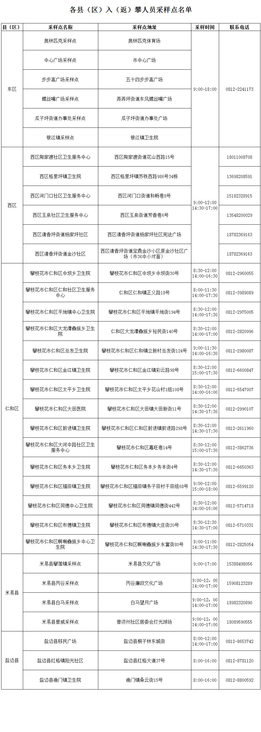 10月26日以来入(返)攀人员,凭14天内行程码,以非公共交通方式到各县(区)指定采样点(名单附后)进行免费检测,接种新冠疫苗48小时内不能接受核酸检测。