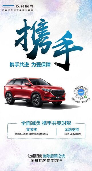 长安欧尚汽车同样感激特殊时期全体经销商的不离不弃,同舟共济,体谅经销商的经营难度,为他们全面减“负”,携手共克时艰。具体为,给予经销商零考核政策支持,免除月度批售和零售考核。同时,还给予金融支持,延长还款期限。