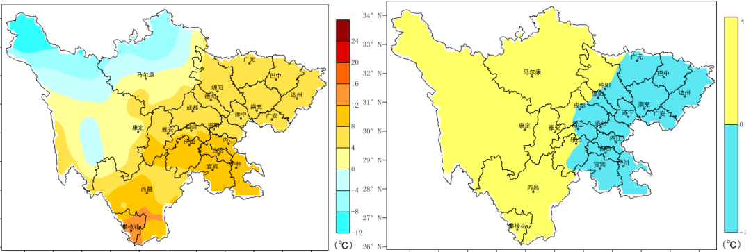 冬季季内变温幅度较大,12月下旬至2月上旬可能有阶段性强降温时段出现,川西高原北部及盆地高海拔地区易出现低温雨雪冰冻天气过程。