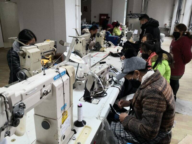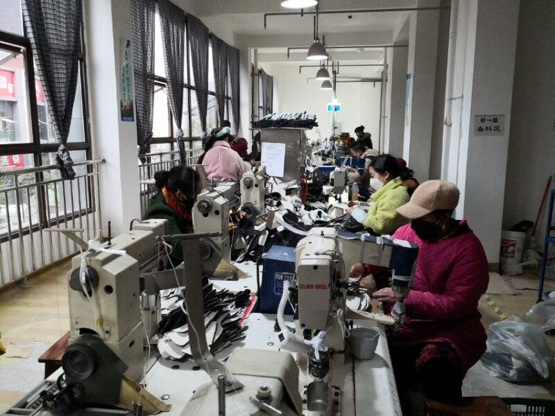 “终于开工了,在家闲着的时候特别着急”,2月18日,在乐山市马边彝族自治县民建镇的峨眉山金威利公司扶贫车间里,建档立卡贫困户能着本别戴着口罩坐在缝纫机前一边缝着鞋面,一边和工友说着自己的担忧。