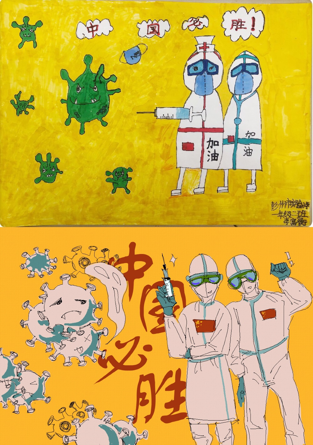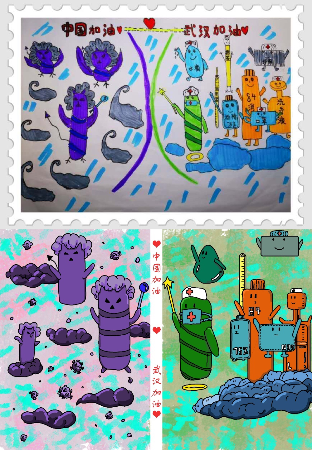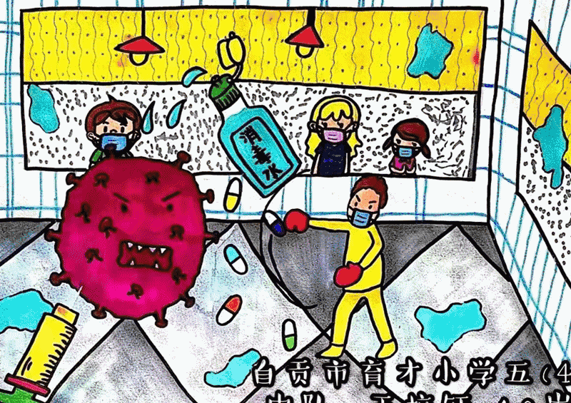 她说,小画家在作品中大胆想象了多种“解药”及治疗机制,艺术化地呈现了童心中的“科学战疫”;清晰明了的构图,大胆的色彩选用,搭配出了小朋友丰富的内心世界。