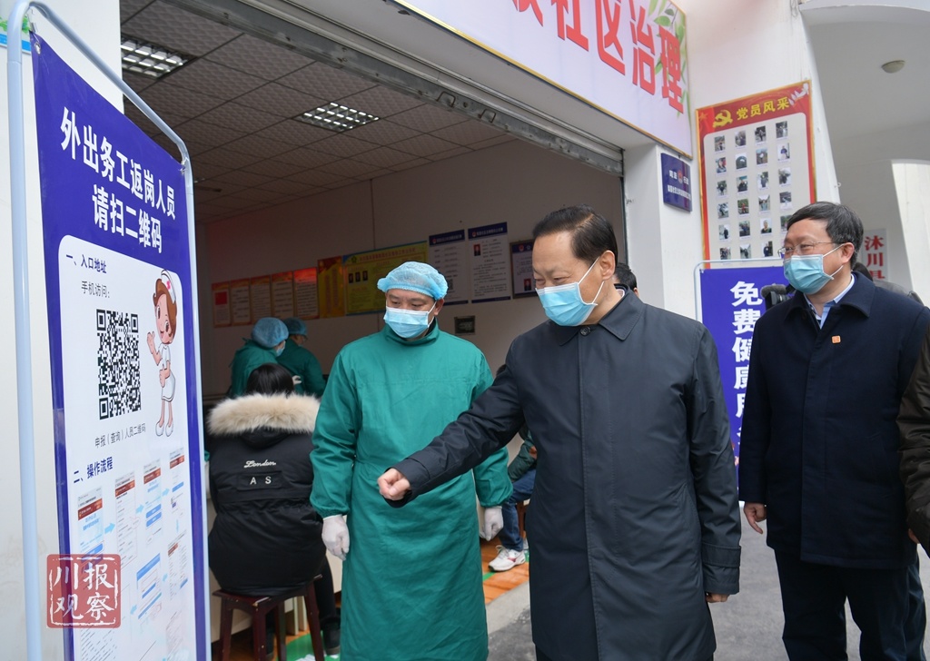 2月17日,彭清华书记到乐山市沐川县沐溪镇梨园社区检查督导疫情防控工作,了解外出务工人员健康申报和查询系统运行情况。