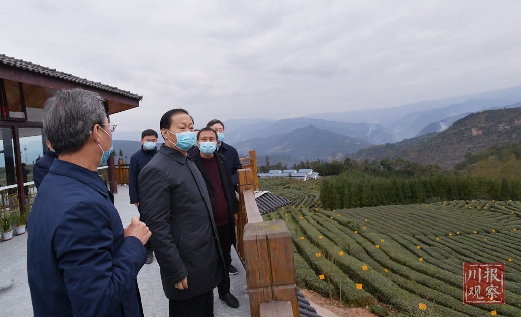 2月17日,彭清华书记到乐山市马边县劳动乡福来村调研,察看高山茶规模化种植情况。