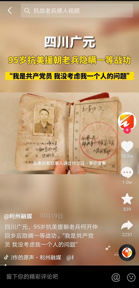 在微博平台,“新都资讯”“温江发布”等账号发布了《长征胜利85周年 130秒重温红军长征英雄诗篇》《老人8个儿子参加红军全部牺牲 转!致敬!》等内容,获得众多网友点赞。抖音“朝天融媒”的短视频《10位抗美援朝老兵受邀观看<长津湖> 观影结束后集体向银屏敬礼》获得31万余点赞,“利州融媒”的《“我是共产党员 我没考虑我一个人的问题”》、“天府郫都”的《这盛世如你所愿,向抗美援朝的英雄们,致敬!》等抖音文章,也获得了超10万点赞。广元市昭化区的抗美援朝老战士李化武从广元到成都看望老战友周全弟,微博话题#2位志愿军老兵58年后再相聚#得到广大网友关注,不少人留言向老英雄致敬,评论区感动满满。