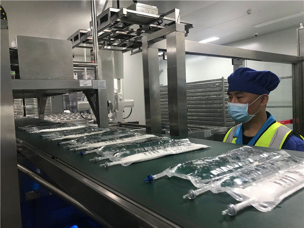 杨琴带记者走进了公司的3号生产大楼,这里主要生产高端肠外营养输液产品。负责产品生产的车间主任朱仲强介绍,对于无法进食的重症患者来说,营养液就是维持他们身体机能的必需品。目前,这里生产的产品,大部分供应到了湖北和武汉的医院,用于新冠肺炎重症患者的救治。